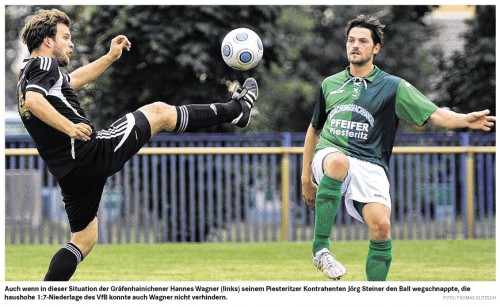 Ein Debakel erlebte Gräfenhainichens Coach René Wiesegart an seiner alten Wirkungsstätte in Piesteritz. 1:7 verloren dort seine Jungs gegen Piesteritz II. Schon zur Halbzeit führten die Platzherren 3:1 nach Toren von Neuzugang Jörg Steiner (2., 34.) und Philipp Scopp (23.). In Hälfte zwei trafen Pit Schultz (50.) und Tobias Klier (53., 61.) sowie Jens Stockmann (76.). Der VfB-Ehrentreffer gelang Daniel Richter (18.). Auch Grün-Weiß Annaburg hat anscheinend das Siegen verlernt und verlor nicht nur 2:0 beim Landesligaabsteiger SV Friedersdorf, sondern in der 80. Minute auch noch Mannschaftskapitän Marvin Richter durch eine Gelb-Rote Karte. Die zwei Friedersdorfer Treffer erledigte Martin Ungefroren (4., 78.). Annaburgs Trainer Uwe Rohlik meinte nur, dass man diesen Spieltag schnellstens vergessen sollte.