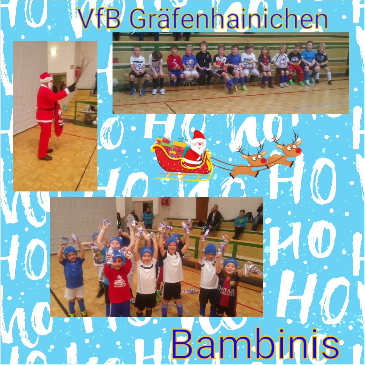 Zum letzten Training unserer Bambinis bekamen wir Besuch vom Weihnachtsmann ?. Nachdem er sich ein paar Tipps geben ließ und die Jungs ihm ihr Können zeigten, packte er endlich seinen gut gefüllten Weihnachtssack aus. Wie still es auf einmal in der Halle war. Alle versprachen weiterhin fleißig zu trainieren und "brav" zu sein. Tolle Mützen für die kalte Jahreszeit und kleine Leckereien wurden ausgepackt. Vielen Dank. Wir wünschen allen Bambinis, Ihren Familien und Fans usw. ein besinnliches und frohes Weihnachtsfest ? und einen guten Rutsch ins neue Jahr ??