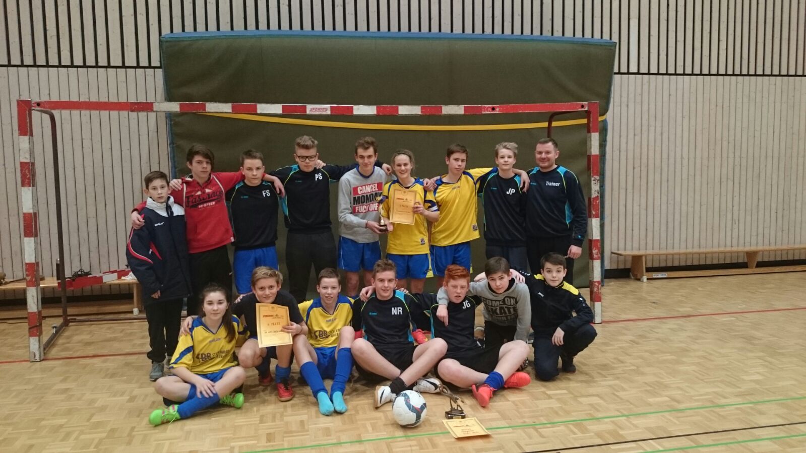 Der VfB hatte am Samstag, den 15.01.2017, zum 2. Zweirad-Fitz-Cup der U15 in der Mescheider Turnhalle geladen. Vor Turnierbeginn kam die Absage einer Mannschaft, weshalb wir 2 Teams ins Rennen schickten, aufgefüllt mit 3 Spieler unserer D-Jugend – Danke Niklas Hänisch, Leon Mehre und Dominik Schüler. Unsere „1. Mannschaft“ kam ungeschlagen als Gruppensieger ins Halbfinale, die „2. Mannschaft“ kam mit 2 Siegen und einem Unentschieden auch als Gruppensieger ins Halbfinale.