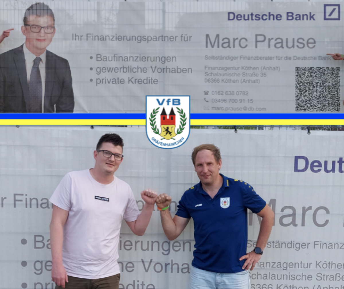 Heute machen wir mit unserer Vorstellungsrunde weiter. Wir wollen euch einen weiteren neuen Unterstützer des Vereins etwas näher bringen. Wir freuen uns mit Marc Prause unseren Unterstützerkreis erweitern zu dürfen. Marc ist ein selbstständiger Finanzberater der Deutschen Bank und im Raum Bitterfeld/Köthen beheimatet. Bereits seit letzem Jahr ist sein Banner in Richtung der HEM Tankstelle zu sehen. Bei Leuten die sich mit dem regionalen Fußball beschäftigen, sollte dieser Name kein unbekannter sein. Er selbst hat viele Jahre die Fußballschuhe geschnürt und ist dort unter anderem gemeinsam mit unserem Steve für Thalheim aufgelaufen. Da zwischen beiden nach wie vor ein sehr guter Austausch besteht, konnte Steve seinen alten Weggefährten von einer Partnerschaft mit dem VfB überzeugen. Ihr habt Fragen oder Interesse, dann meldet euch über die unten genannten Kontaktmöglichkeiten.