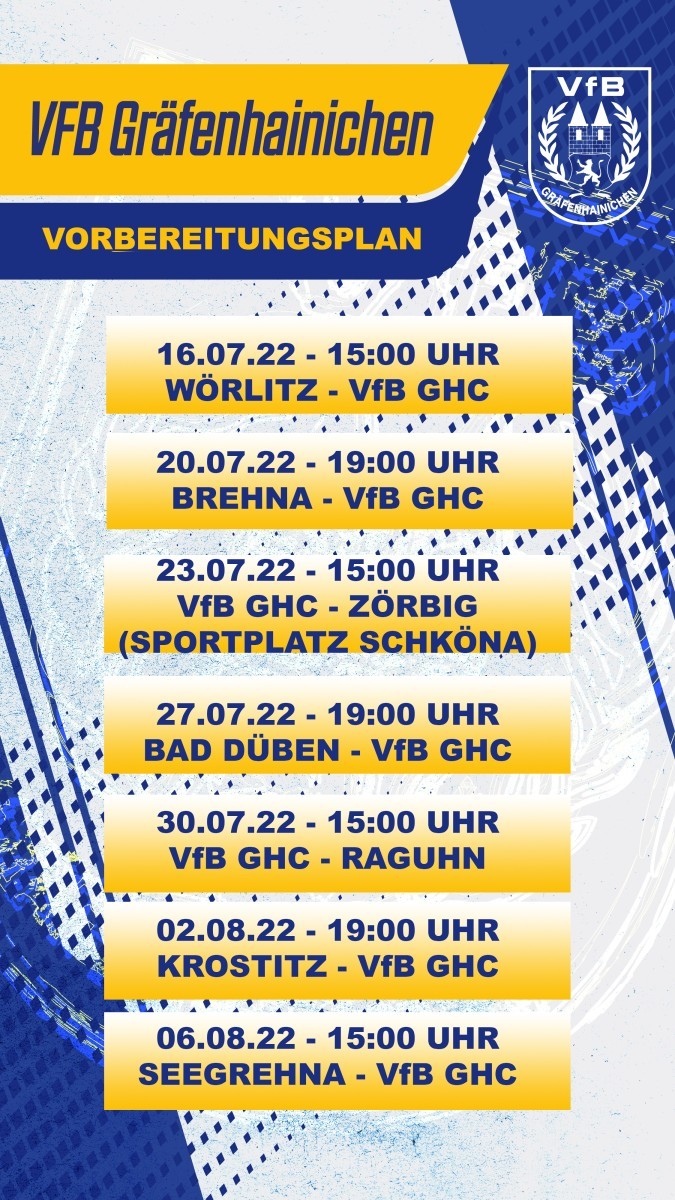 Schon nächsten Samstag geht es dann los mit den Testspielen, wo wir als erstes zu Gast bei unseren Freunden in Wörlitz sind. Alle weiteren Testspiele seht ihr auf dem Bild im Anhang. Änderungen können sich natürlich immer mal ergeben, diese versuchen wir euch rechtzeitig mitzuteilen.