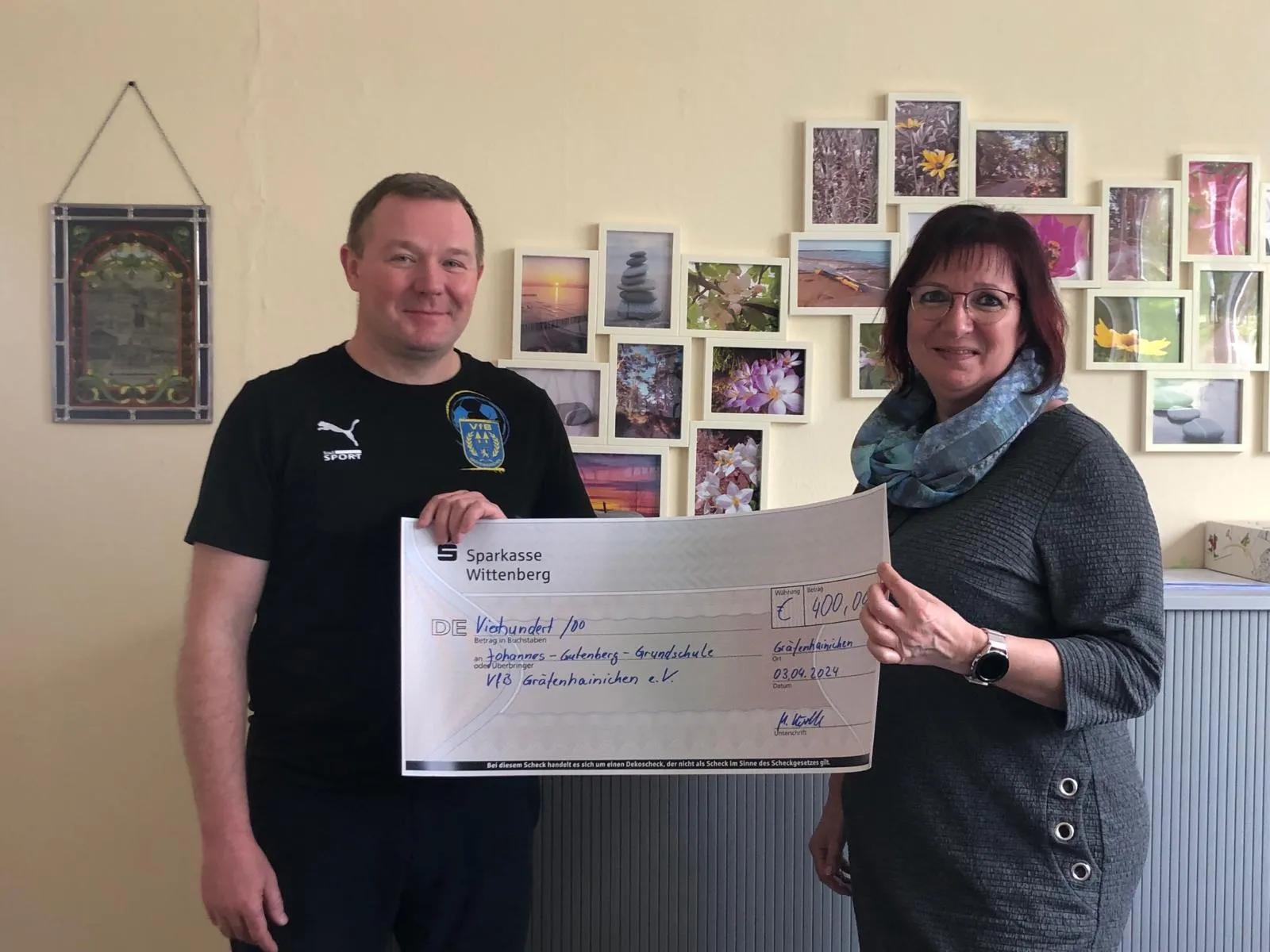 In diesem Jahr gingen diese Spenden zum einen, an die Grundschule "Johannes Gutenberg", die nur einen Steinwurf von unserem Sportplatz entfernt ist.